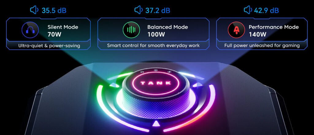 The foundation of the Tank Centre series can be traced back to the TANK 03, which launched in October 2023. That system gained attention for offering configurations such as the Intel Core i9-12900H paired with NVIDIA GeForce RTX graphics in a small form factor. It also introduced a physical three-mode performance dial, allowing users to switch between Silent, Auto, and Performance modes to manage noise and power use.