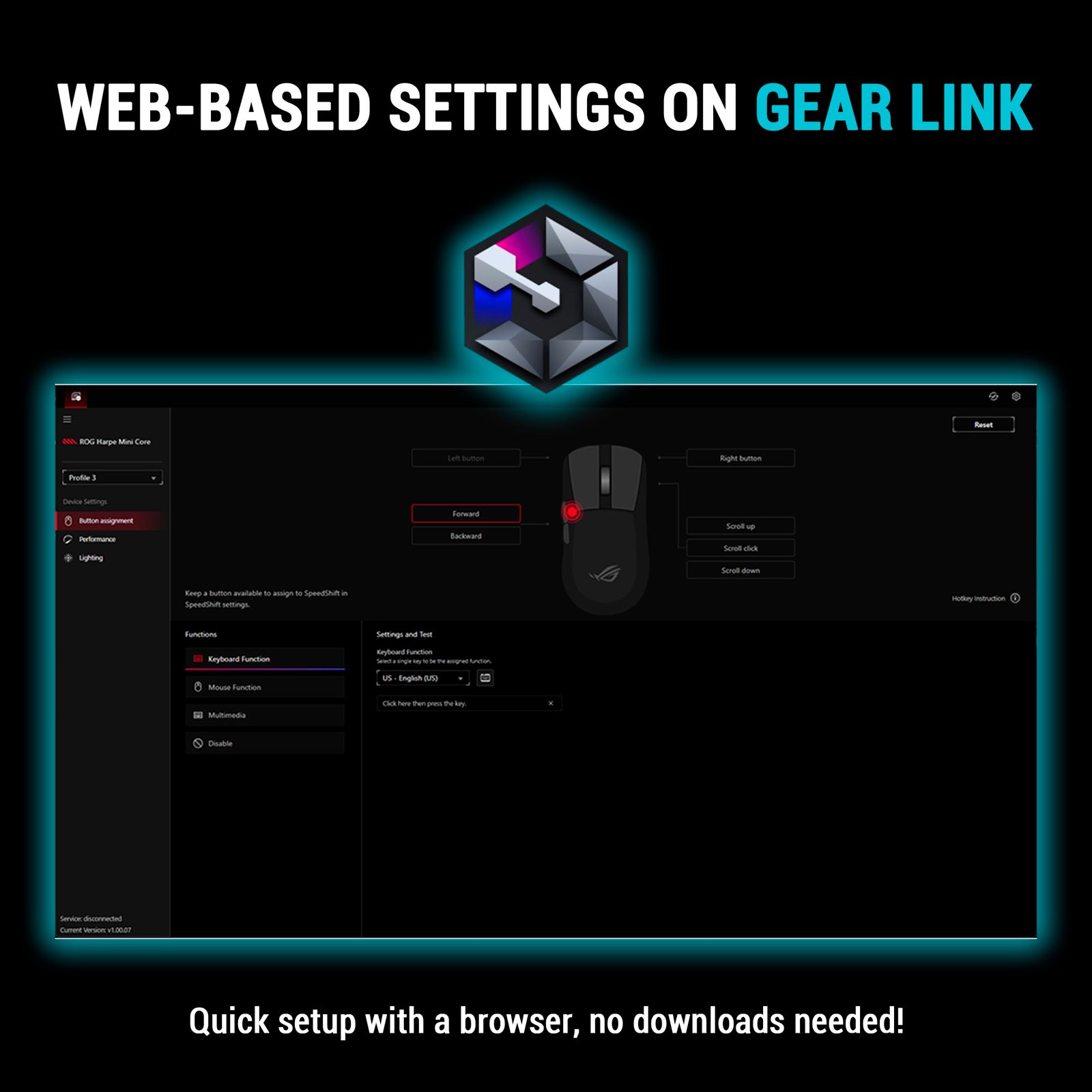 The Amazon page confirms that the ROG Harpe Ace Mini Core supports ASUS Gear Link, the company’s web-based driver platform. Gear Link, introduced with ASUS’s newer HE keyboards, allows users to adjust settings through a browser without installing dedicated software. This approach reflects a broader shift toward lighter software solutions and easier system access.