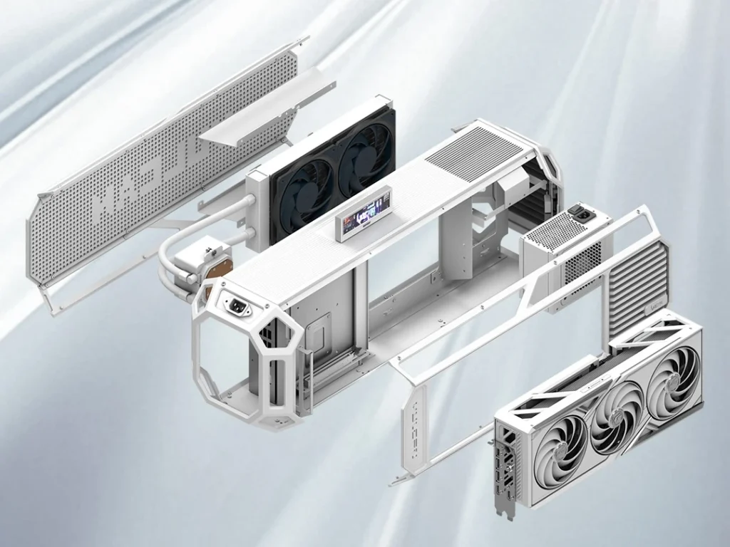 This display module can be attached directly to the case, allowing users to monitor system information or customize visual output. The chassis also includes a pure aluminum nameplate, adding a visual match to the overall metal finish.
