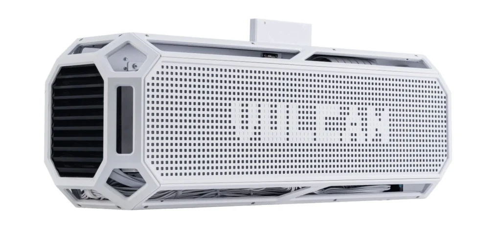 The Vulcan Armor uses a horizontal layout and measures 617 × 186.6 × 210 mm, placing it within the compact small-form-factor category while still leaving room for powerful components. The case structure is made from CNC-machined all-aluminum alloy, giving it a solid frame and a minimal industrial look. Colorful has also included a magnetic contact base on the top panel, designed to support the Vulcan Smart Screen that ships with the Vulcan W graphics card.