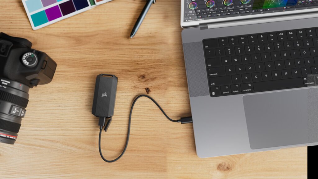 The second release, the Corsair EX300U USB External SSD, offers a compact and lightweight design focused on convenience and portability. With USB 3.2 Gen 2 Type-C connectivity, it delivers read and write speeds up to 1,100 MB/s, making it suitable for transferring photos, editing media files, or creating quick backups on the go.