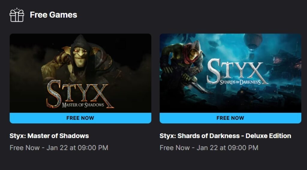 The offer includes the original Styx: Master of Shadows, released in 2014, and Styx: Shards of Darkness from 2017. Epic is also giving away the Deluxe Edition of Shards of Darkness, which includes additional content beyond the standard version. The promotion will remain active until Thursday, January 22, at 5 PM.