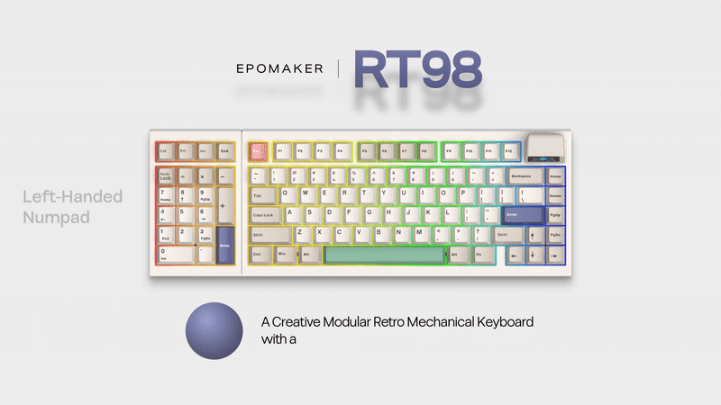 The EPOMAKER RT98 is positioned as a compact keyboard that retains much of the functionality of a full-size layout. Its main feature is a modular design that allows the numeric keypad and certain control keys to be detached from the main body and repositioned. Users can place the numeric keypad on either the left or right side, depending on their workflow or desk arrangement. This layout flexibility is aimed at users who prefer a left-side numpad for mouse-heavy tasks or those who want a more conventional right-side configuration.