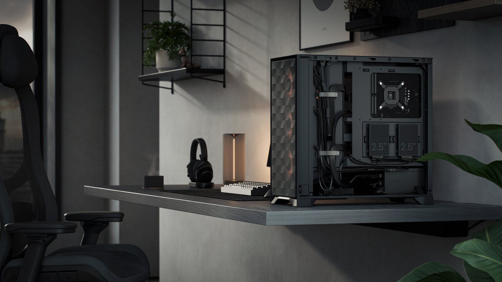 The interior layout is designed with ease of building in mind. Tool-free side panels allow quick access to components, while dedicated cable routing space helps keep builds organized. Bracket-free SSD mounts further simplify installation and reduce build time.