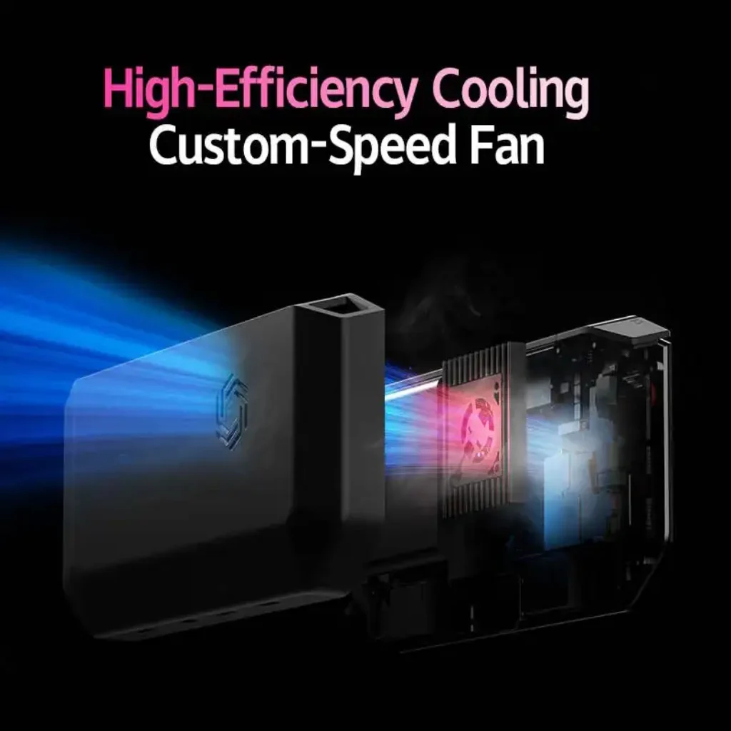 The device includes an integrated cooling fan capable of reaching speeds of up to 20,000 RPM. Active cooling is intended to maintain stable performance during extended gaming sessions, particularly when running demanding titles or emulator workloads. This approach is becoming more common among Android handheld manufacturers aiming to improve thermal consistency without significantly increasing device size.