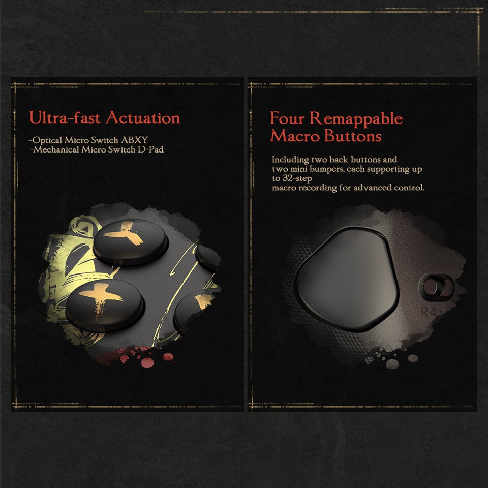 The G7 Pro 8K PC includes four programmable macro buttons, consisting of two lockable back buttons and two additional mini bumpers. Each button supports up to 32-step macro recording, allowing players to map complex command sequences to a single input. The ABXY buttons use optical micro switch technology for accurate actuation and improved durability, while the redesigned D-pad aims to deliver more precise directional input.