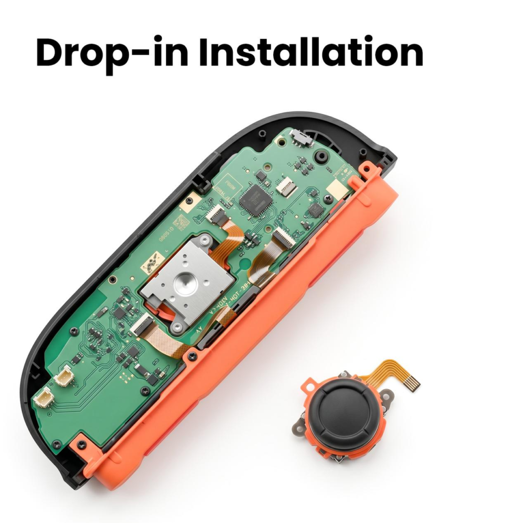The Joy-Con 2 replacement joystick is designed as a direct 1:1 fit, matching the internal layout of the original module. Installation follows the same process as replacing a standard joystick, with no soldering required. After installation, users can complete calibration through the system settings, keeping the upgrade process relatively simple.