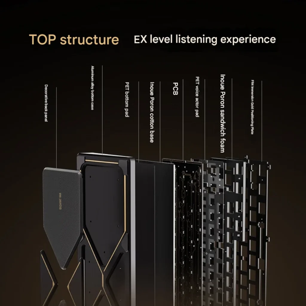 The NV60 features a CNC-machined aluminum alloy chassis designed to provide structural rigidity while maintaining a premium feel. The keyboard uses a top-mounted structure paired with an FR4 gold-plated positioning plate, a material commonly used in enthusiast builds due to its balanced flex characteristics. Internally, the NV60 integrates four layers of sound-absorbing material intended to reduce resonance and improve acoustic feedback during typing. This layered configuration aims to deliver a controlled sound profile without relying on excessive dampening that could negatively affect key feel.