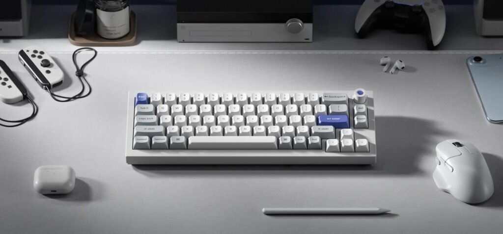 The keyboard features an all-aluminium chassis that continues the company’s focus on durable construction. It uses a gasket-mounted structure to support the plate, which helps reduce vibration and maintain a consistent typing feel. Keychron includes its OSA-profile double-shot PBT keycaps, giving the keyboard a slightly taller and rounded profile compared to Cherry-style caps. This difference in shape provides a unique look and feel that separates the Q2 HE 8K from many other compact gaming keyboards.