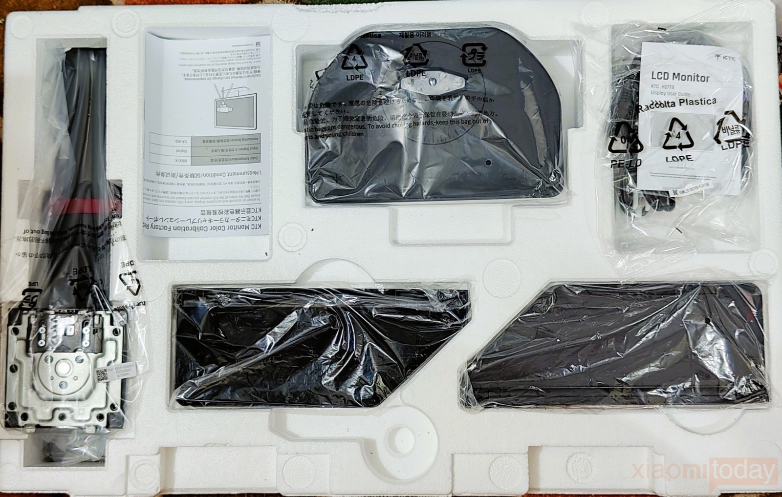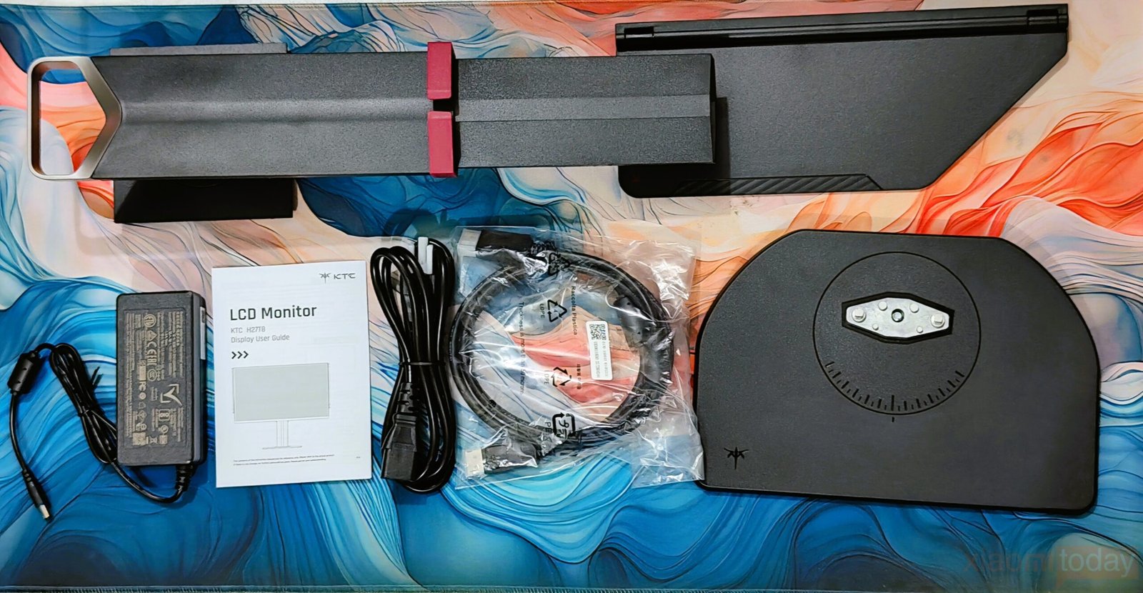 The package includes the monitor along with a solid base for quick setup. Two monitor shielding hoods are provided to help minimize glare and improve viewing focus. KTC 27M1 also includes a quick start guide, a DisplayPort cable, an adapter, and a power cord, giving users all the necessary accessories to get started right away.