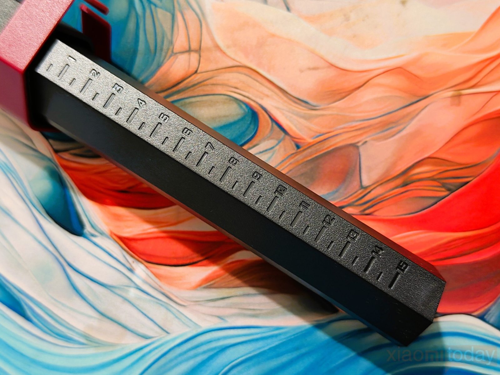 KTC adds etched measurement scales to both the stand neck and the base. These markings make it easy to note precise height, tilt, and swivel positions, which can be useful if the monitor is frequently repositioned or transported. Users who value consistent ergonomics will find this feature particularly helpful. The height range extends up to 150mm, tilt adjustment reaches 40 degrees, swivel allows up to 120 degrees of movement, and the display can be rotated 90 degrees for portrait use. Users planning a different mounting setup can also rely on the standard 100×100mm VESA interface.
