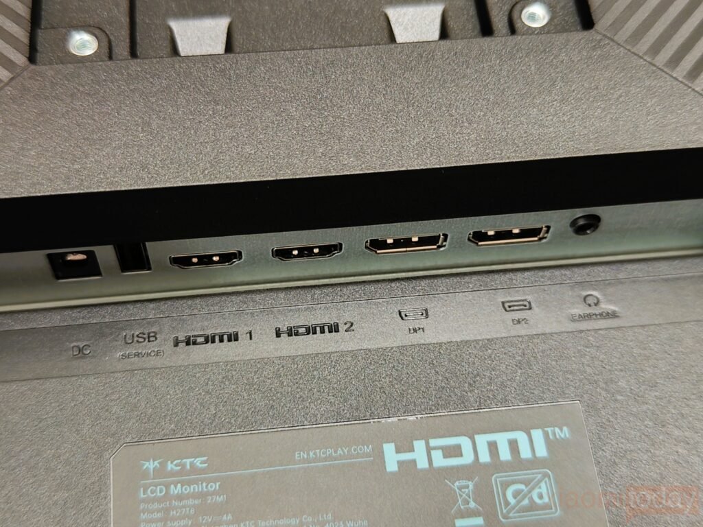 Connectivity is generous for a monitor in this category. The KTC 27M1 is equipped with two HDMI 2.0 ports and two DisplayPort 1.4 inputs, allowing multiple systems to remain connected at the same time. HDMI is limited to 144Hz at 2560×1440, which aligns with console use, while DisplayPort is better suited for higher refresh rates on PC. A 3.5mm headphone jack is included. USB connectivity is minimal, with a single USB 2.0 port reserved for firmware updates rather than peripherals.