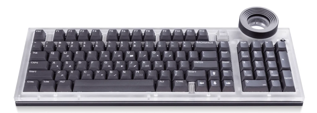 The star ring dial positioned in the upper-right corner of the Yoga Creative Keyboard Angry Cat Edition plays a key role in its design. This rotary control is built to enhance workflow efficiency in editing applications, enabling users to scrub through timelines and fine-tune playback with greater accuracy. Instead of depending solely on a mouse, the physical dial delivers tactile feedback that makes adjustments feel more controlled and deliberate. For video editors and content creators handling detailed projects, this added precision can translate into smoother navigation and improved productivity.