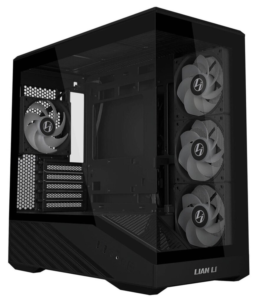 Motherboard compatibility includes both standard microATX and back-connect microATX designs, allowing for cleaner cable management. Lian Li has continued its use of tempered glass panels on both the front and side, delivering a 270-degree view of the system interior. The pillarless design removes visual obstructions, making internal components and lighting clearly visible from multiple angles.