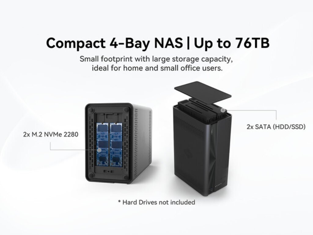 - 4-Bay Storage Design: Supports multiple drives for scalable storage capacity