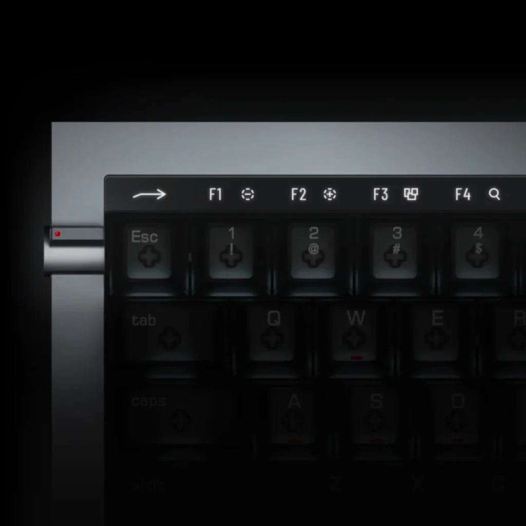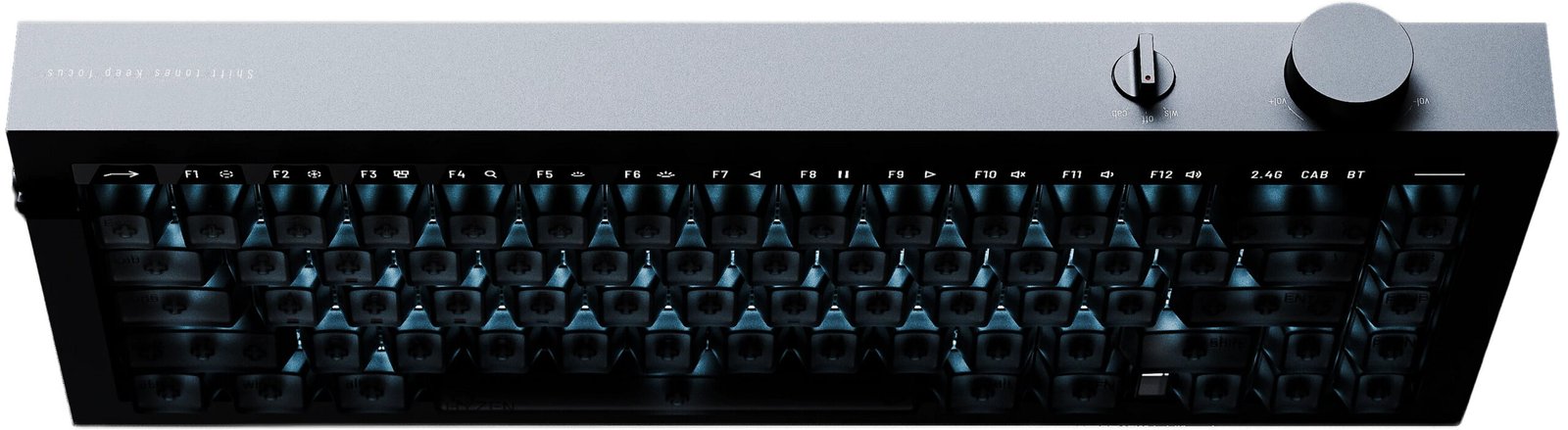 Beyond the new switch technology, the Hyzen keyboard includes several hardware-based controls. A physical toggle allows the number row to function as a function row, with LED indicators positioned above the keys to display the active mode. The keyboard also features a rotary knob placed along the rear edge for volume adjustments, along with a dedicated switch that enables users to select between wired USB, Bluetooth, or 2.4 GHz wireless connectivity.