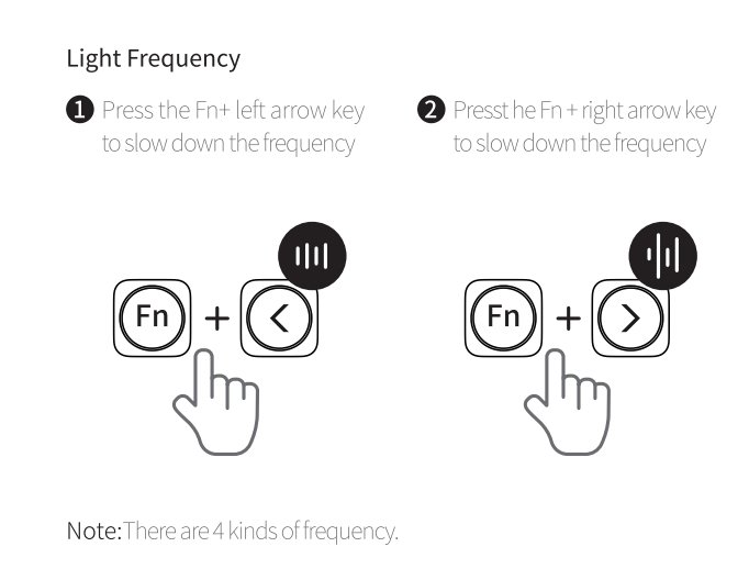 The speed of the lighting effects can be changed with Fn + Left or Right arrow keys, letting users slow down or speed up animations as needed. These onboard controls are intuitive and consistent, allowing for quick adjustments during typing, gaming, or desk setup without interrupting the workflow.