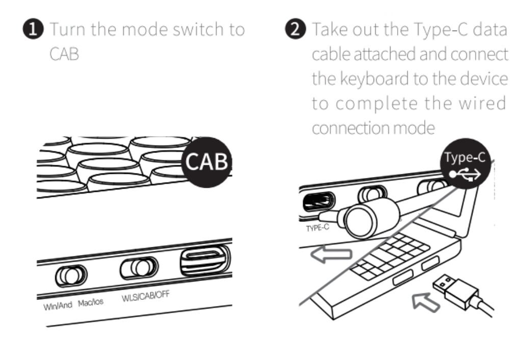 Wired mode is the simplest to set up — just switch to cable mode and plug in the Type-C cable for an instant, stable connection. The physical side switches for Windows/Android and macOS layouts also make cross-platform use more convenient.