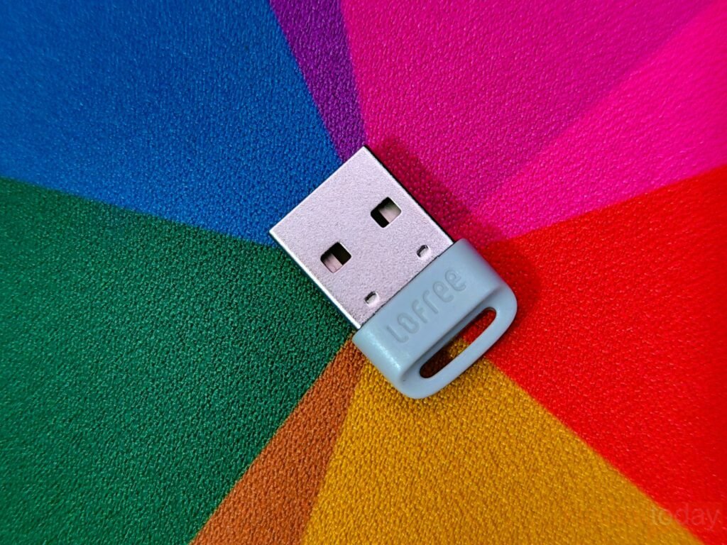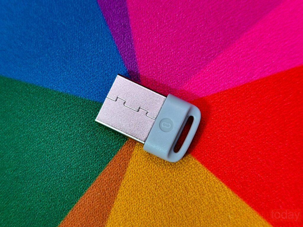 The included 2.4G USB receiver mirrors the keyboard’s minimal aesthetic, with a compact design that can remain connected to a laptop without drawing attention.
