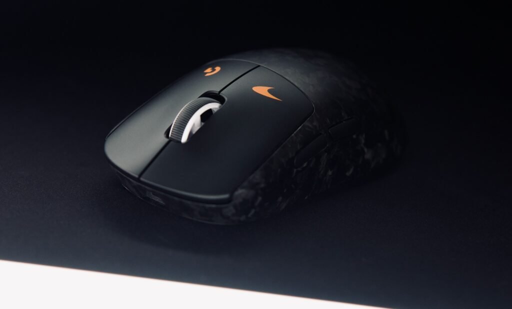 In terms of design, the mouse keeps a clean and performance-oriented look. The left-click button features McLaren’s signature papaya orange color along with team branding, while the right-click button carries the Logitech G logo. The visual treatment is subtle, focusing more on materials and finish rather than adding decorative elements. The carbon fiber structure is intended to provide increased strength while maintaining a lighter chassis, a concept commonly associated with Formula 1 car construction.