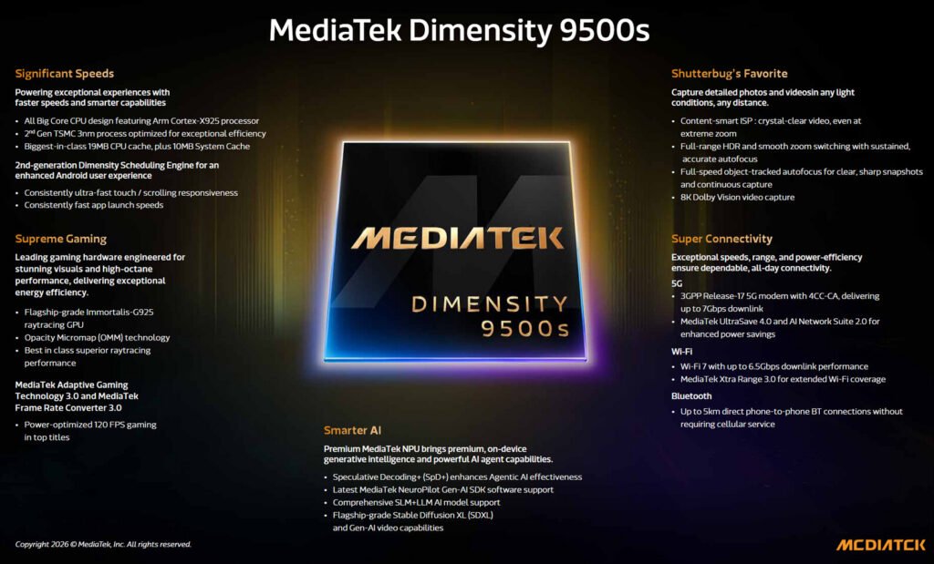 MediaTek Dimensity 9500s & Dimensity 8500 Specifications