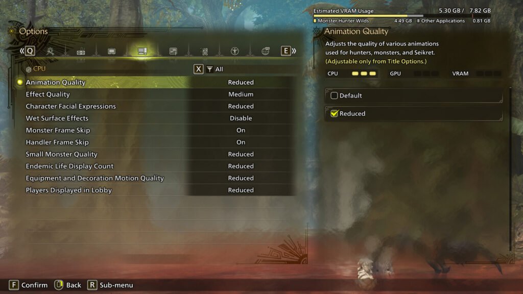 A new CPU tab will be added to the Options menu, allowing players to adjust settings such as Endemic Life display count, the number of players shown in lobbies, small monster quality, effect quality, and animation quality. These options are intended to give players more control over CPU usage.