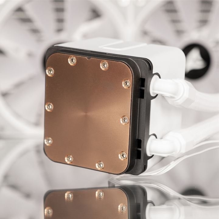 The cooling system is built around a 360 mm radiator designed to handle higher heat output from modern processors. This setup allows the cooler to maintain consistent temperatures during extended gaming sessions or multi-threaded workloads such as rendering and content creation. A copper base plate is used to improve heat transfer from the CPU, and Sharkoon includes DOWSIL thermal paste to support proper installation and thermal contact.