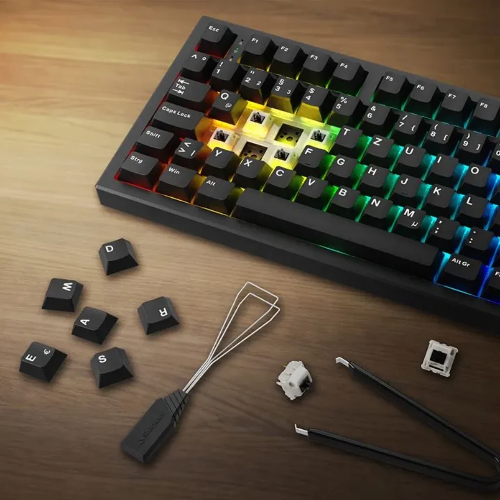 The Sharkoon SKILLER SGK55W is priced at €74.9 in Europe. With wireless support, QMK/VIA compatibility, and a hot-swappable PCB, the keyboard enters the competitive 75% mechanical keyboard segment with a feature set that targets both gamers and customization-focused users.
