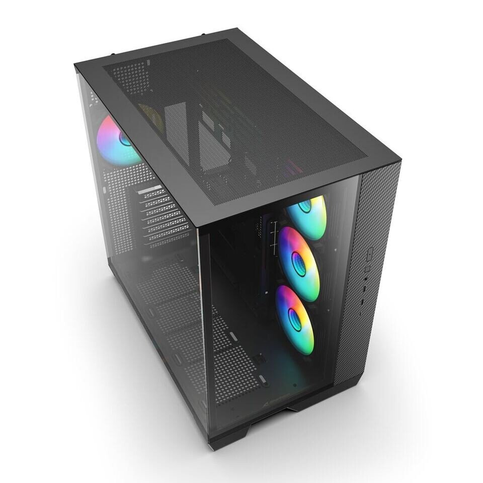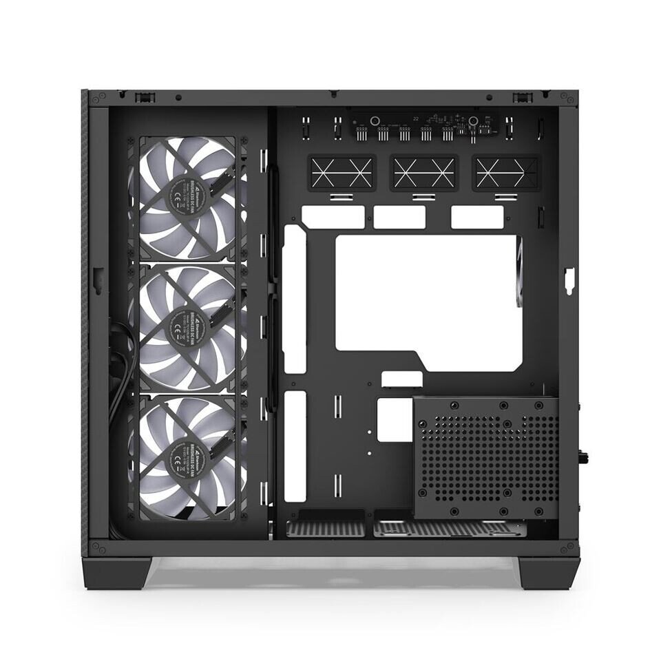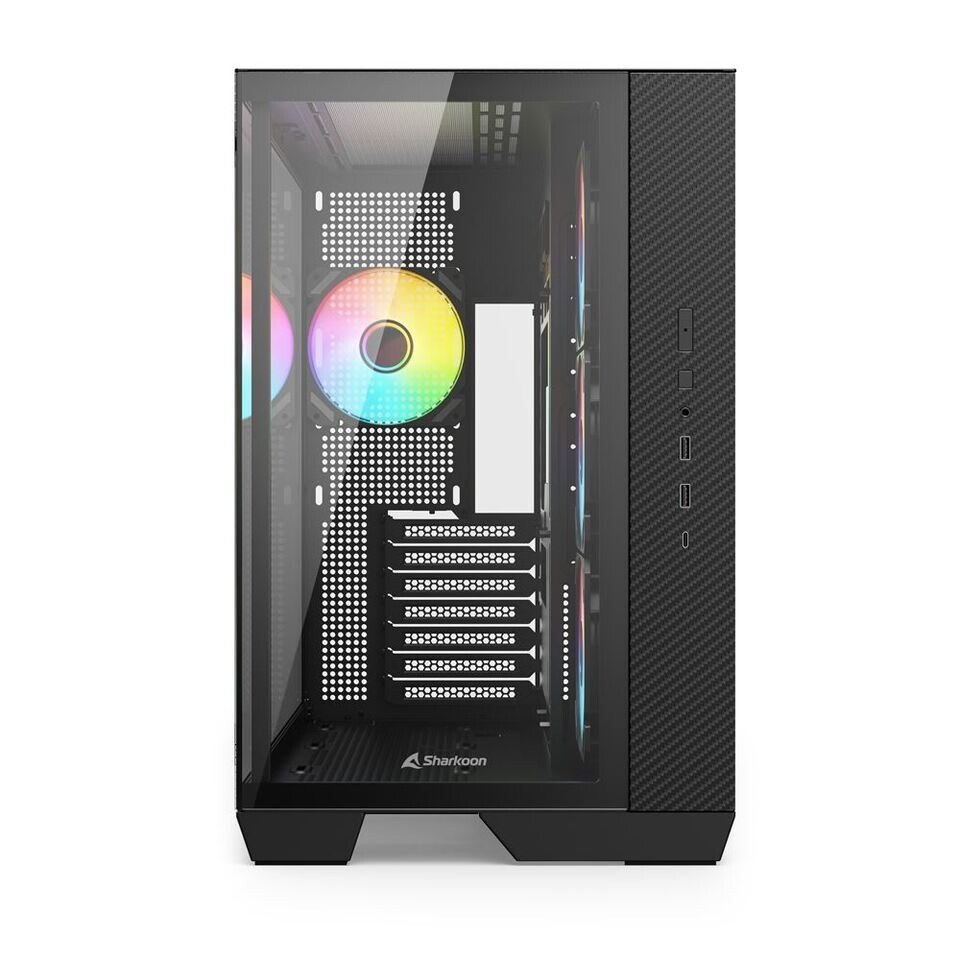 Sharkoon includes four 120 mm ARGB PWM fans with the case. These are paired with a built-in controller that offers five ARGB ports alongside a five-port PWM fan hub. This setup allows users to manage both lighting and airflow without relying on additional accessories, which can simplify the building process.