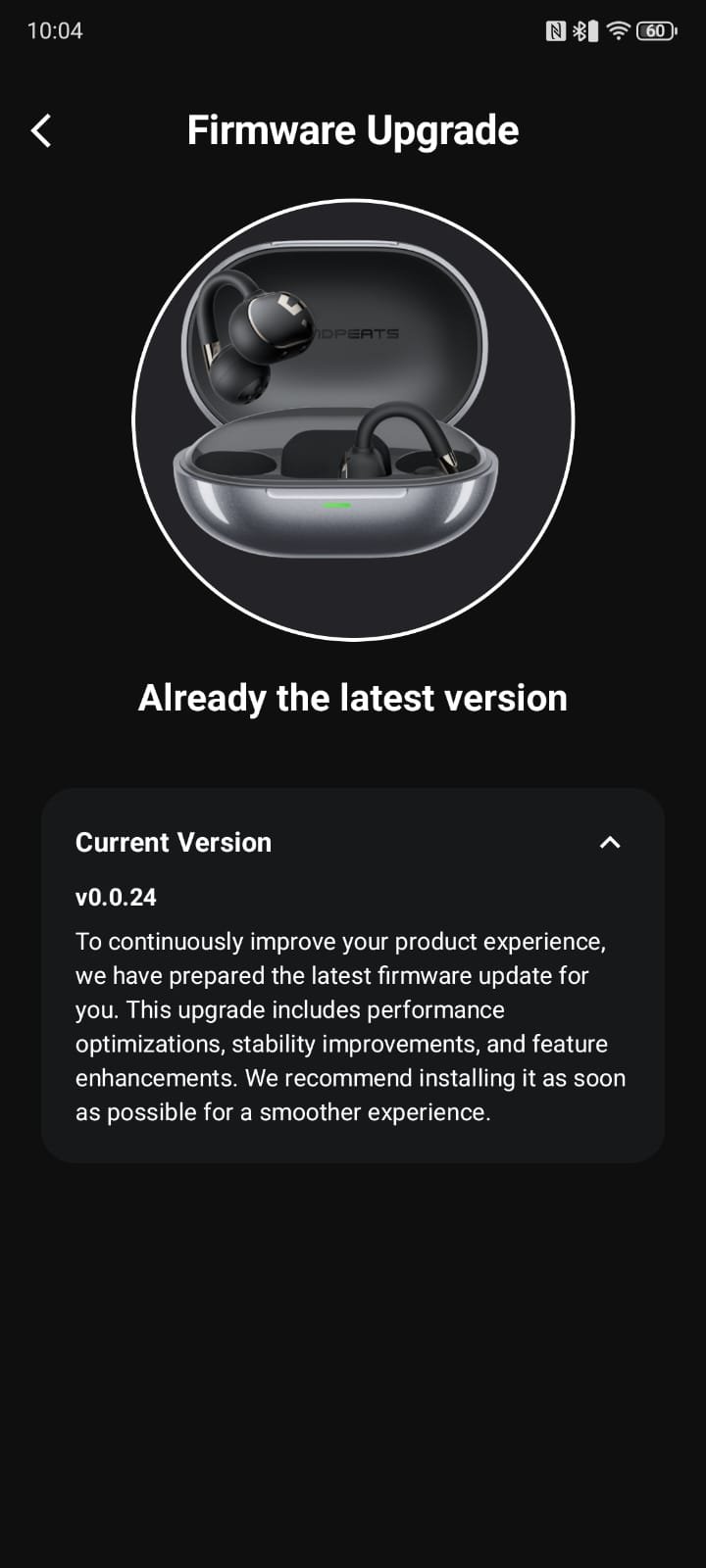 Touch controls are fully adjustable through the Shortcuts menu. Users can remap single, double, or triple taps for functions like track navigation and volume control, integrating the earbuds smoothly into daily use. Firmware updates are handled directly in the app, ensuring the earbuds stay up to date with improvements and new features.
