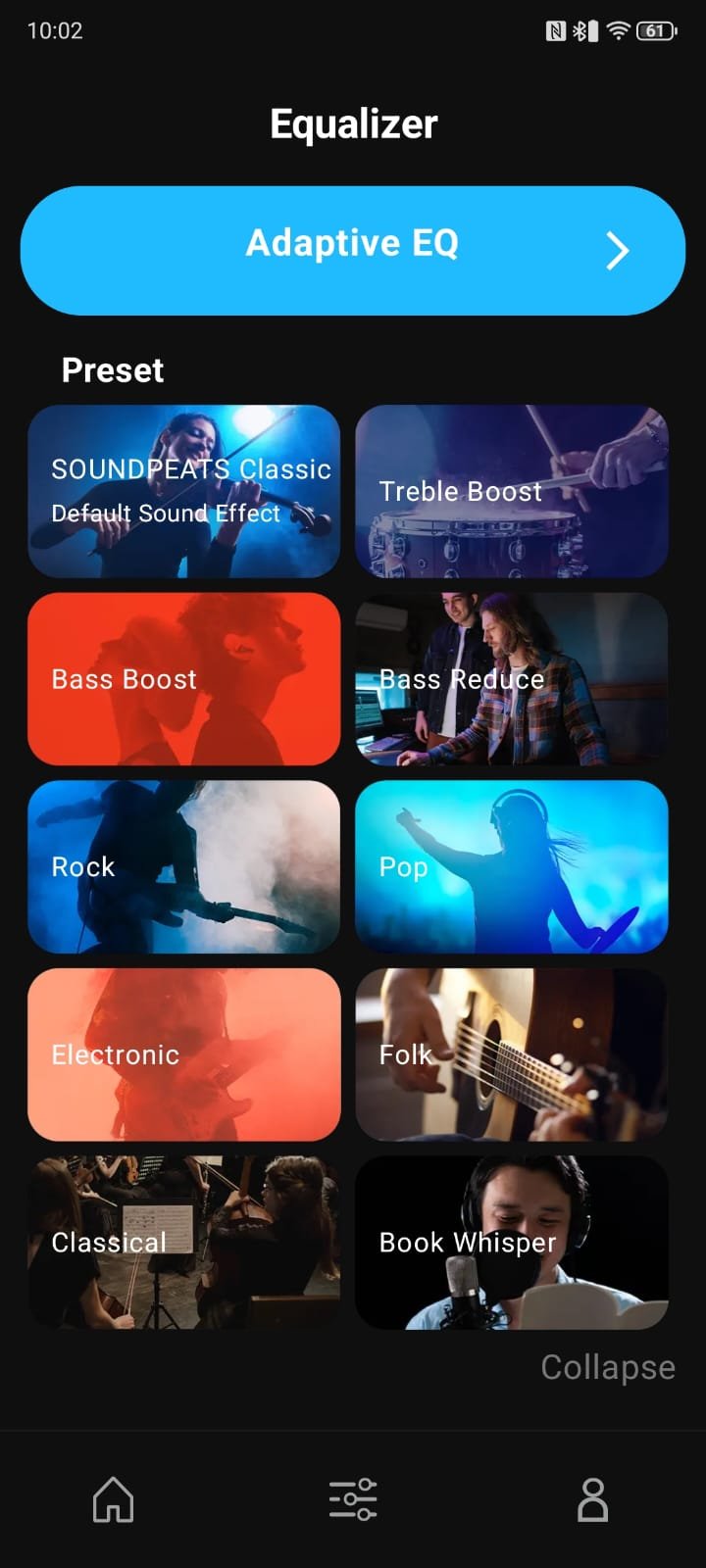 Audio customization is where the app really shines. The Equalizer section offers preset profiles like SOUNDPEATS Classic, Rock, and Electronic. For those who want a tailored experience, the Adaptive EQ lets users fine-tune sound based on personal preferences. This makes it easy to get a listening experience that matches your taste, whether casual or detailed.