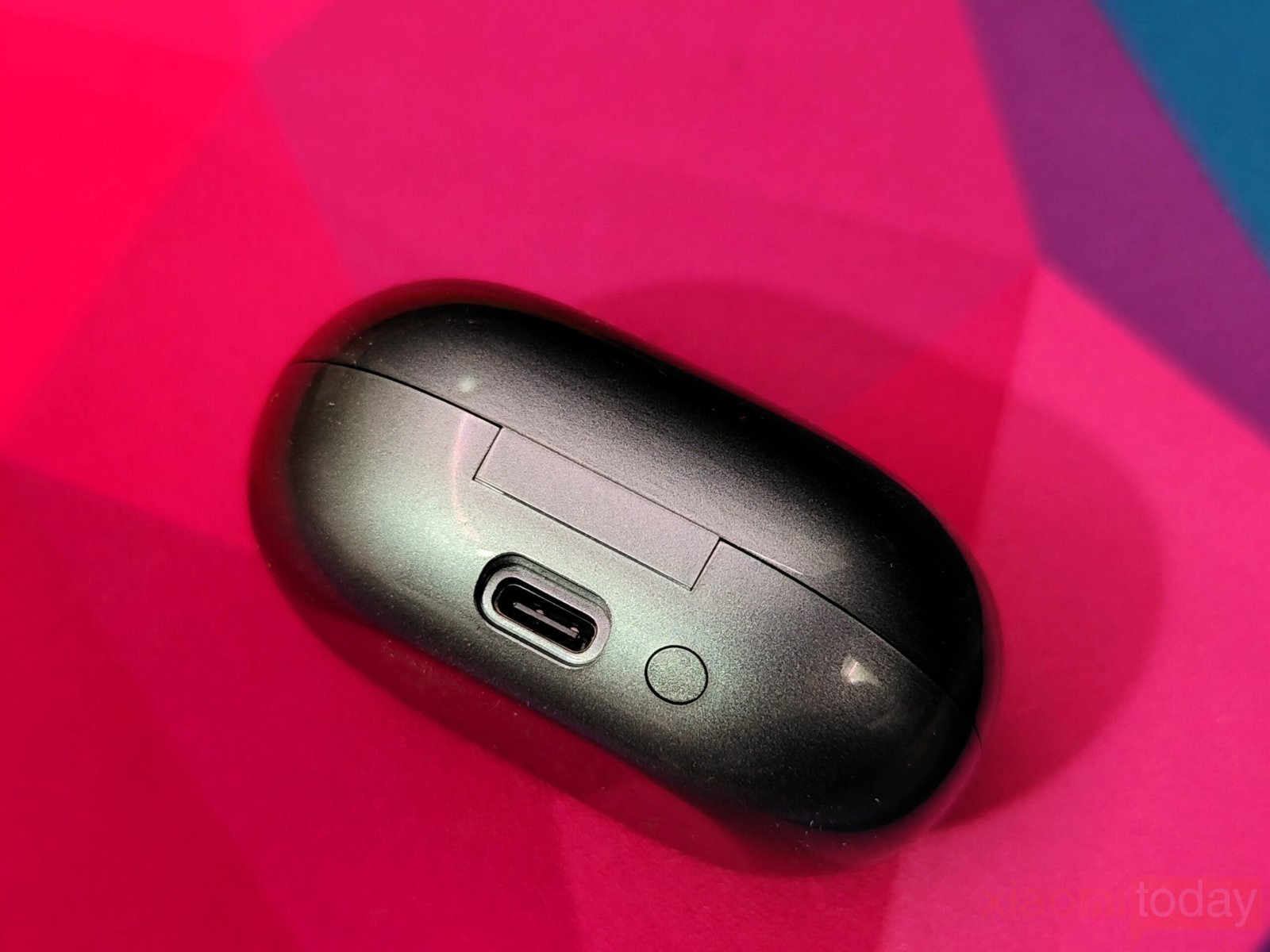 The charging case has a shiny gunmetal finish and a 35 mm thickness, giving it a slightly heavier feel while still being easy to carry. On the back, you’ll find a pairing button and a USB-C port for charging, as wireless charging isn’t available. The lid closes tightly, and the LED on the front shows when the earbuds are charging inside, keeping everything simple and tidy.