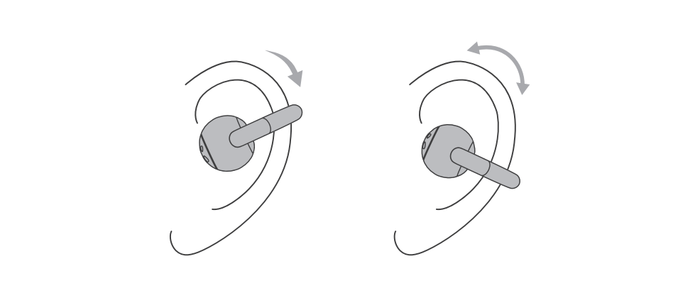 2. Rotate the earbuds so that the sound outlet is aligned vertically with your ear canal for the best fit and audio performance.