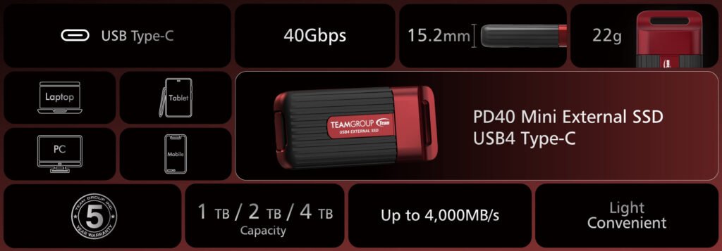 TeamGroup highlights that the PD40 Mini is designed to support both professional workloads and everyday storage needs. Whether used for storing media libraries, transporting work files, or backing up important data, the drive is built to deliver speed, compatibility, and portability in a balanced package. More information, including pricing and regional availability, will be shared through TeamGroup’s official distribution channels as the product becomes widely accessible across global markets.