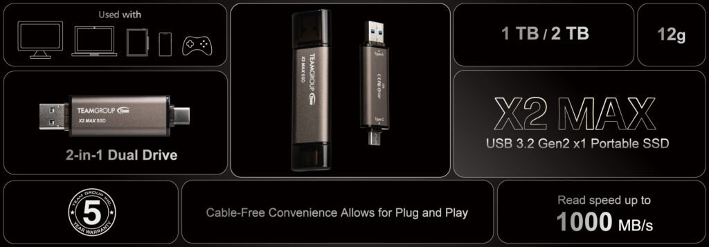 Portable SSDs shaped like USB flash drives are still a small niche, but the concept makes sense as traditional thumb drives struggle with speed and capacity demands. The X2 MAX is positioned as an alternative for users who want something more capable without moving to a larger, cable-dependent external SSD. By pairing SSD-grade storage with a dual USB Type-A and Type-C connector, TEAMGROUP aims to deliver a device that works easily across PCs, laptops, mobile devices, and gaming consoles without extra adapters.