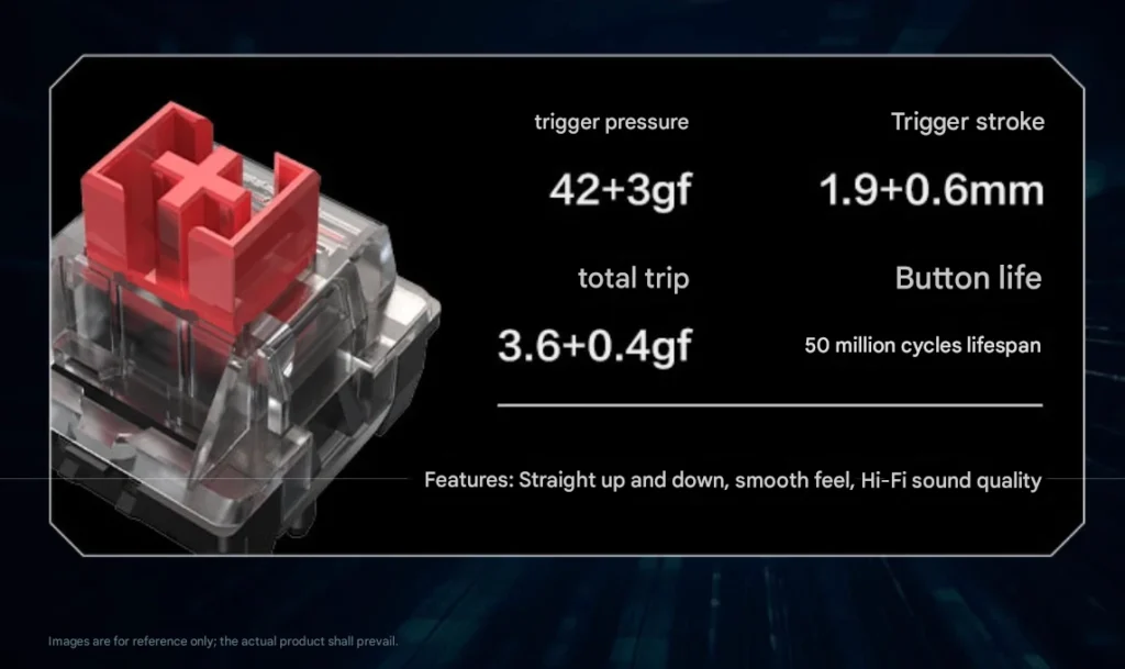 The KG3089 includes an L-shaped RGB light strip along its side, offering customizable lighting effects that complement the overall design without being too distracting. It uses HiFi mechanical switches that deliver precise key presses with tactile feedback, making it well-suited for fast-paced gaming and extended typing sessions.