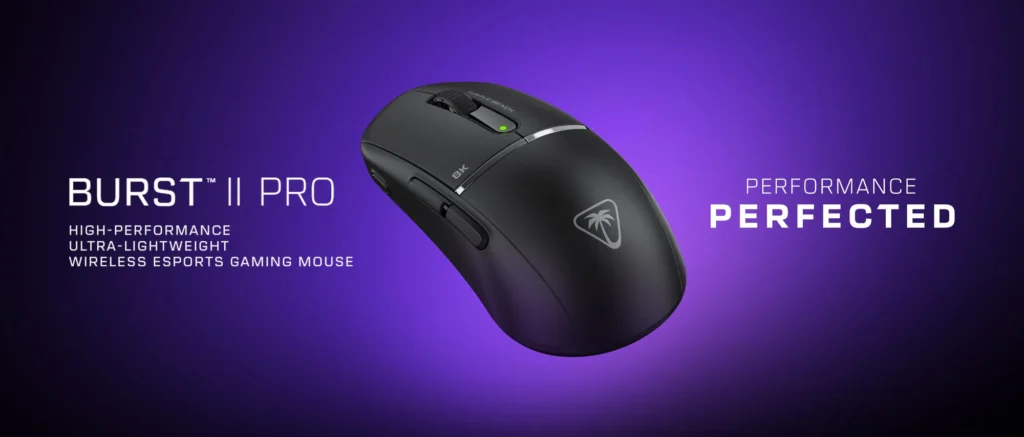 The Burst II Pro wireless mouse focuses on esports-level precision. It supports a true 8K polling rate with 0.125 ms latency, delivering faster response times than standard gaming mice. Equipped with Turtle Beach’s Owl-Eye 30K DPI sensor, the mouse offers accurate tracking up to 750 inches per second and 70 g acceleration. The TITAN Optical Switches are rated for 100 million clicks, while the 57 g lightweight shell and symmetrical design make it comfortable for medium hand sizes and claw-grip users. The mouse provides up to 40 hours of battery life at full performance or 150 hours at standard polling rates and includes NVIDIA Reflex compatibility for reduced system latency.