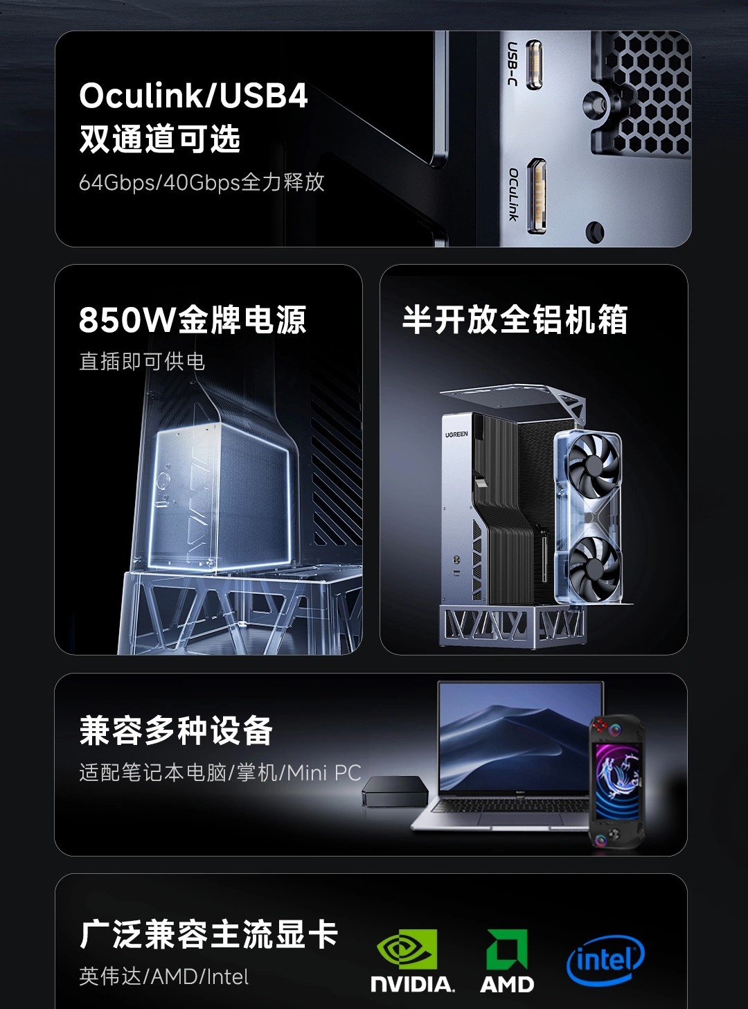 Ugreen, widely recognized for its USB hardware, cables, and power adapters, has made its first move into the GPU expansion market with the LinkStation Graphics Card Expansion Dock. The product was recently listed on JD.com with a price of 2299 Yuan (~$325 USD), drawing interest from PC enthusiasts both in China and abroad.