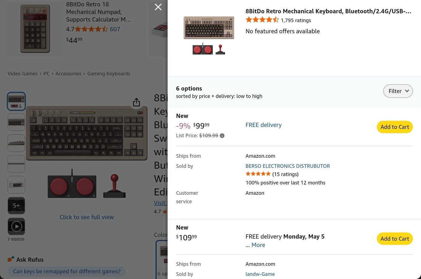 Some 8BitDo items are still available in the US through other retailers. For example, the 8BitDo Retro Mechanical Keyboard C64 Edition, which could not be ordered through the company’s site, was listed on Amazon at $99.99. This suggests that stock held by third-party sellers or US warehouses is not currently affected.