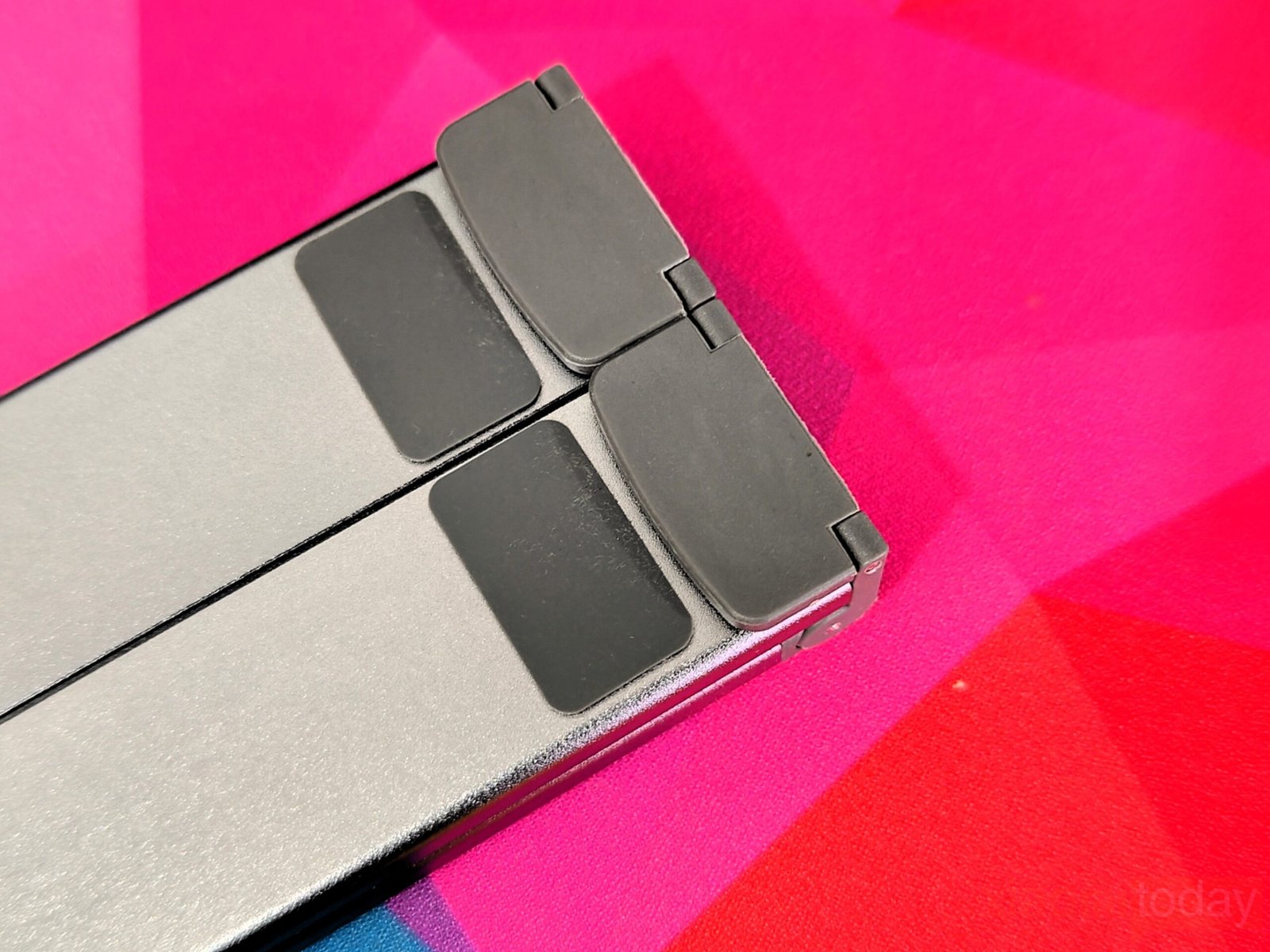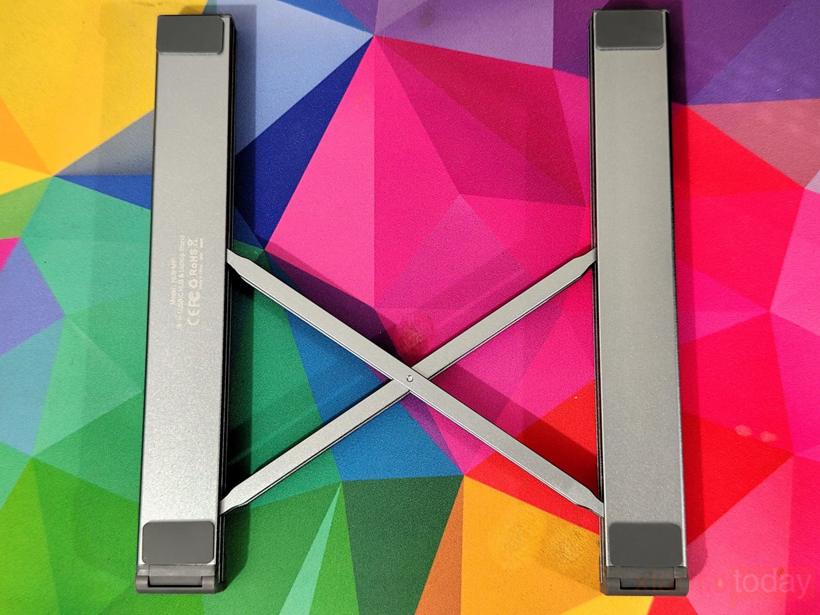 Adjustment is handled through a multi-step hinge system that offers nine height levels. The range spans from a low typing angle to a more elevated position suited for pairing with an external keyboard. Each step locks into place with enough resistance to keep the platform stable under load. The triangular support structure plays a key role here, forming a stable base that reduces pressure on individual joints and improves overall balance.