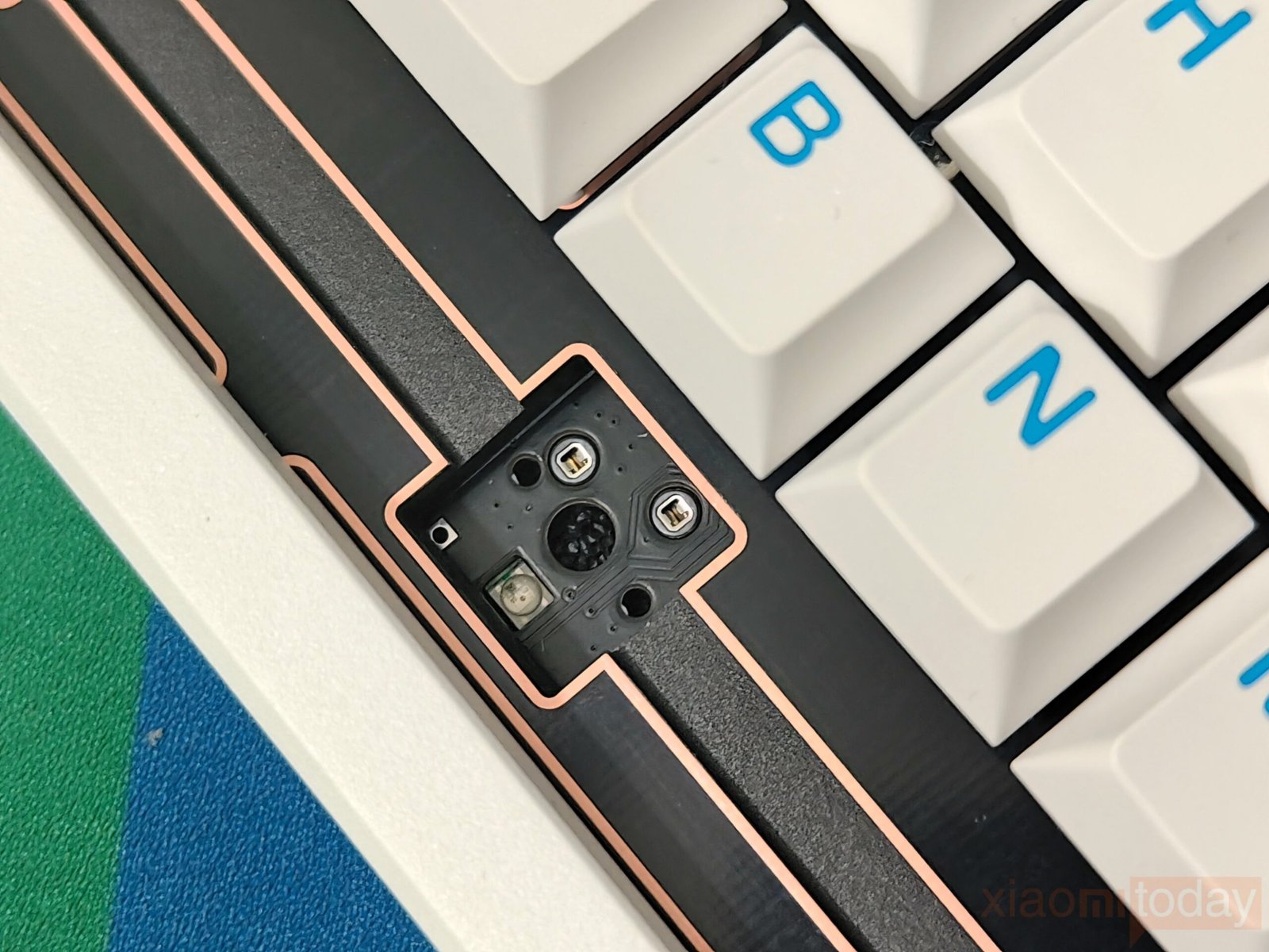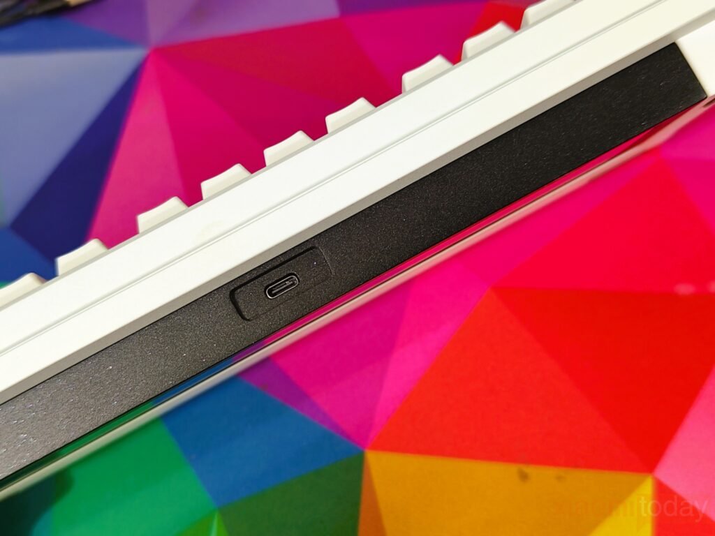 The Type-C port is positioned along the top edge, following a layout familiar to most users. It sits slightly recessed into the frame, but locating it by touch isn’t an issue, even without looking. In everyday use, the cable can be plugged in without lifting or repositioning the keyboard, adding a bit of convenience for quick swaps or charging. The placement feels well thought out and fits naturally into a typical desk setup.