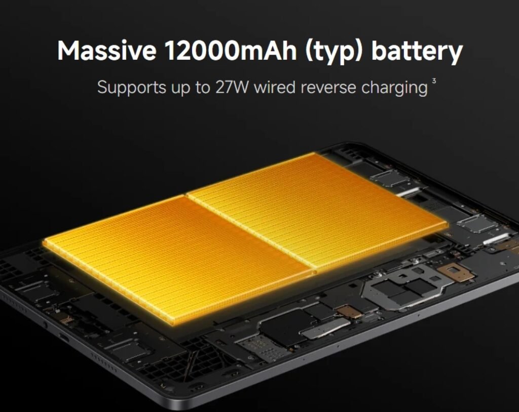 Battery capacity is another key area of focus. The REDMI Pad 2 Pro packs a 12,000mAh battery, with Xiaomi claiming a standby time of up to 83.05 days. Charging is handled via a USB Type-C port with 33W wired fast charging support. The tablet also supports 27W wired reverse charging, allowing it to charge other devices when needed.
