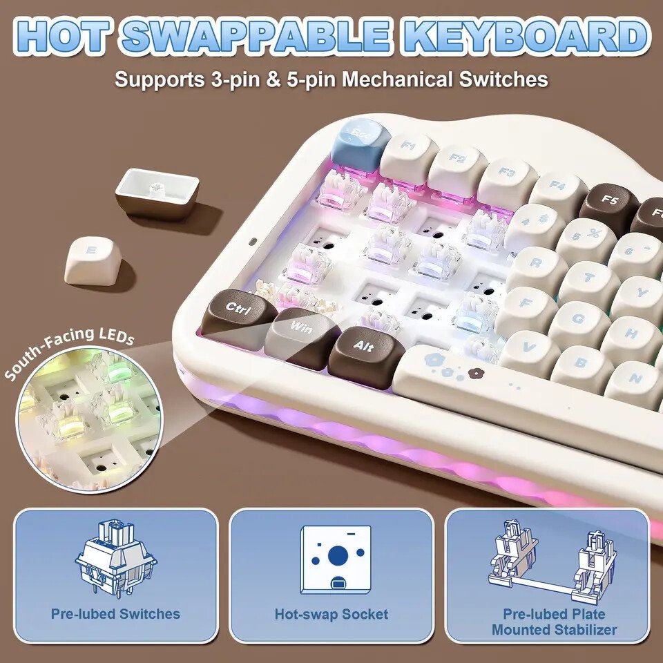 With its compact form factor, themed design, and support for switch customization, the YUNZII C75 in the Choco colorway targets users seeking a smaller mechanical keyboard that combines visual appeal with features commonly found in enthusiast-oriented models.