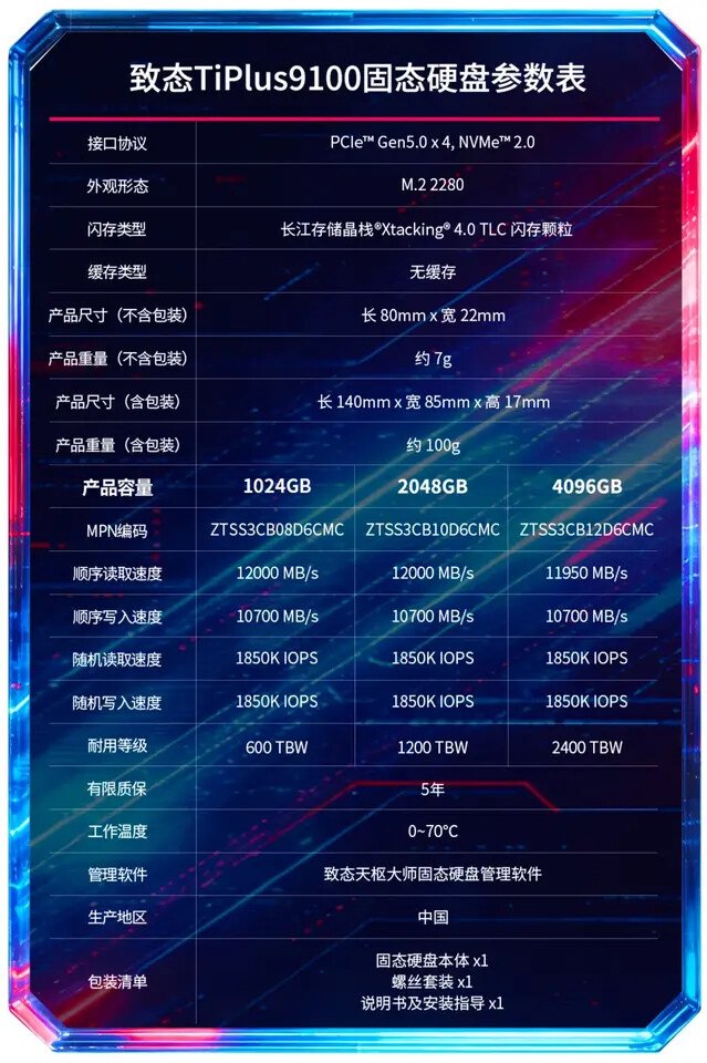 Zhitai, the consumer brand of YMTC, has expanded its storage lineup with the TiPlus 9100, its first PCIe 5.0 model under the TiPlus series. The new NVMe SSD is aimed at gaming systems, thin laptops, and desktop PCs, with a focus on high throughput and a compact design.